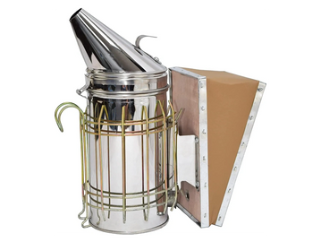 El ahumador de colmena de abeja hecho de acero inoxidable produce humo fresco seguro para ayudar a calmar las abejas y proteger de picaduras durante el mantenimiento de la colmena